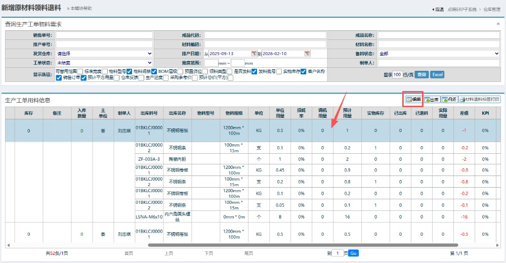 如需要修改编辑,详细操作可以查看教程:点晴ERP领料单编辑操作