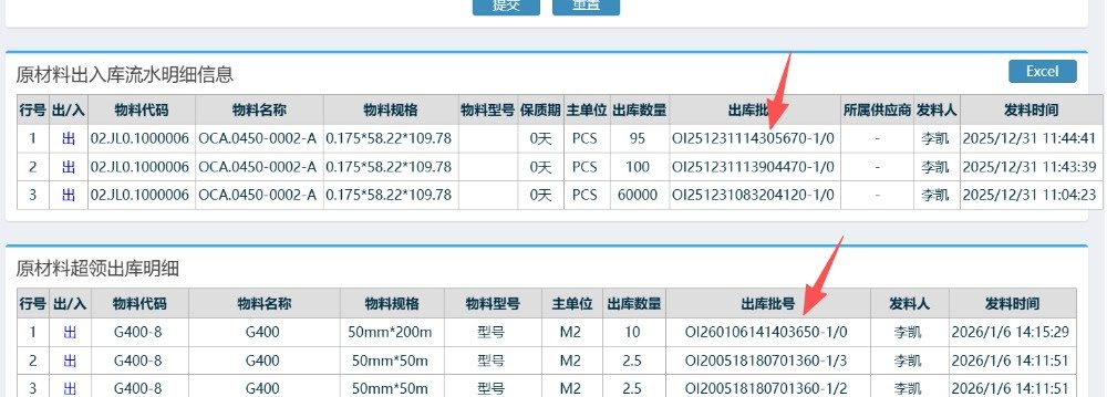 在弹出的页面窗口可以查看到对应的出库明细清单,其中有一栏出库批号