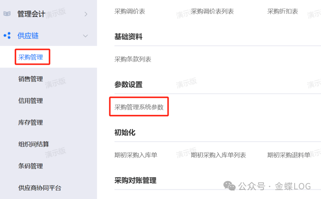 路径:供应链-采购管理-采购管理系统参数