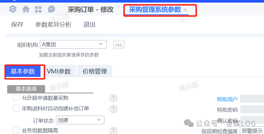 上面提到了【采购管理系统参数】里面有③种,其他两种这里简单讲一下。