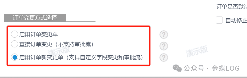 三种变更方式具体的区别后面单独讲解,这里因为勾选了【启用订单新变更单】,则采用方式③