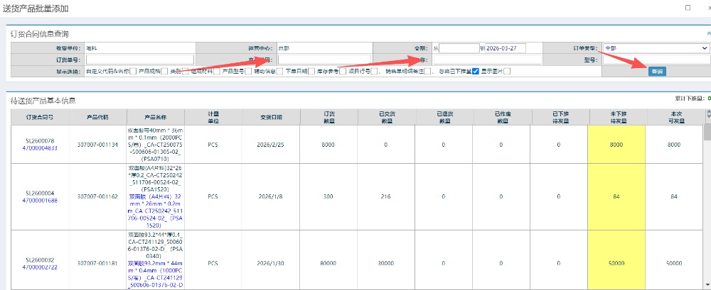 搜索需要出货的明细