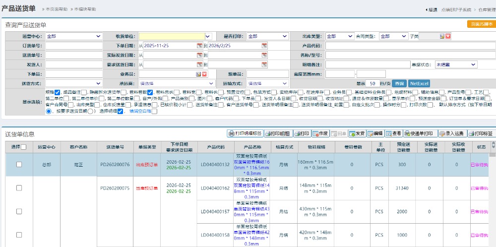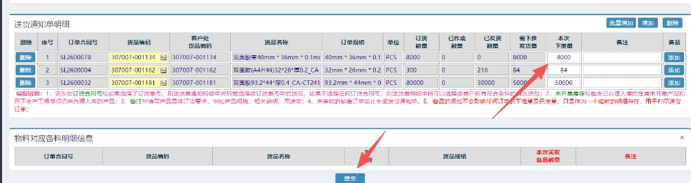 提交即可查询到对应的送货单;菜单为仓库管理-物料出库管理-销售出库管理-送货单明细管理:如下图所示: