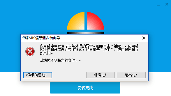 :安装点晴MIS信息通PC客户端时报错提示:系统找不到指定的文件,如何解决?