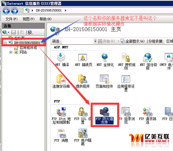 一、首先打开IIS选择服务器会进入全局设置,再双击FTP防火墙支持:
