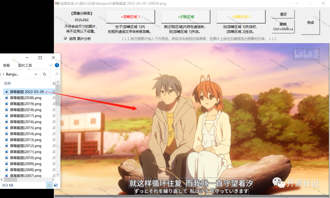 1. 打开忽略区域设置窗口,拖入任一张截图。