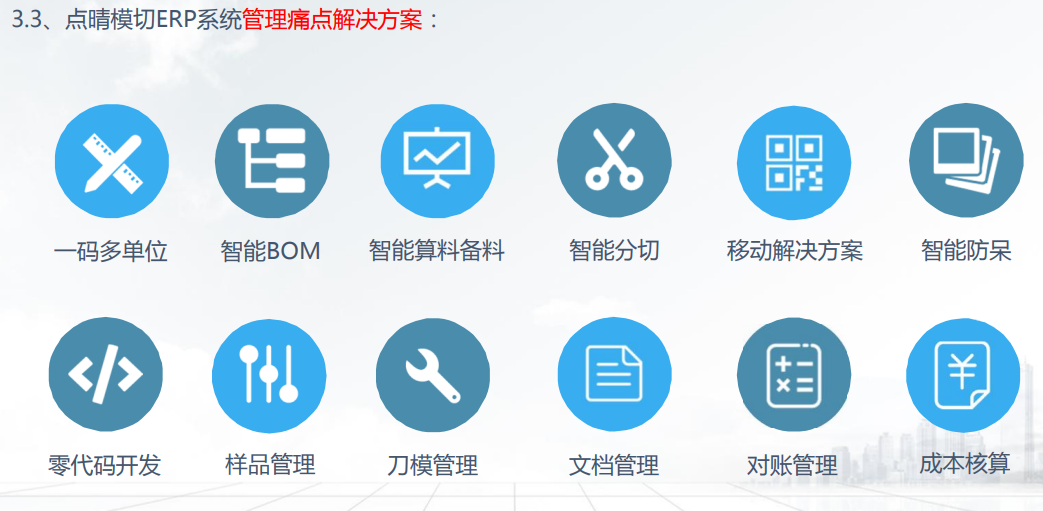 :模切ERP哪个好?为何推荐点晴ERP?伴随着中国制造行业的不断发展,模切行业也实现了持续快速增长。但模切行业的有它自身独特的属性,因此也有管理上的痛点需要解决。1、库存积压严重,资源浪费;