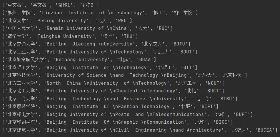 # extract_table()用法with pdfplumber.open(r'test.pdf') as pdf_info:  # 打开pdf文件    page_one = pdf_info.pages[0]  # 选择第一页    page_one_table = page_one.extract_table()    for row in page_one_table:        print(row)
