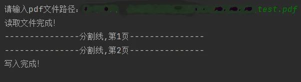 # 提取表格数据,并保存到excel中def get_table(self):    wb = Workbook()  # 实例化一个工作簿对象    ws = wb.active  # 获取第一个sheet    con = 0    try:        # 获取每一页的表格中的文字,返回table、row、cell格式:[[[row1],[row2]]]        for page in self.pdf_info.pages:            for table in page.extract_tables():                for row in table:                    # 对每个单元格的字符进行简单清洗处理                    row_list = [cell.replace('\n', ' ') if cell else '' for cell in row]                    ws.append(row_list)  # 写入数据            con += 1            print('---------------分割线,第%s页---------------' % con)    except Exception as e:        print('报错:', e)    finally:        wb.save('\\'.join(self.pdf_path.split('\\')[:-1]) + '\pdf_excel.xlsx')print('写入完成!')