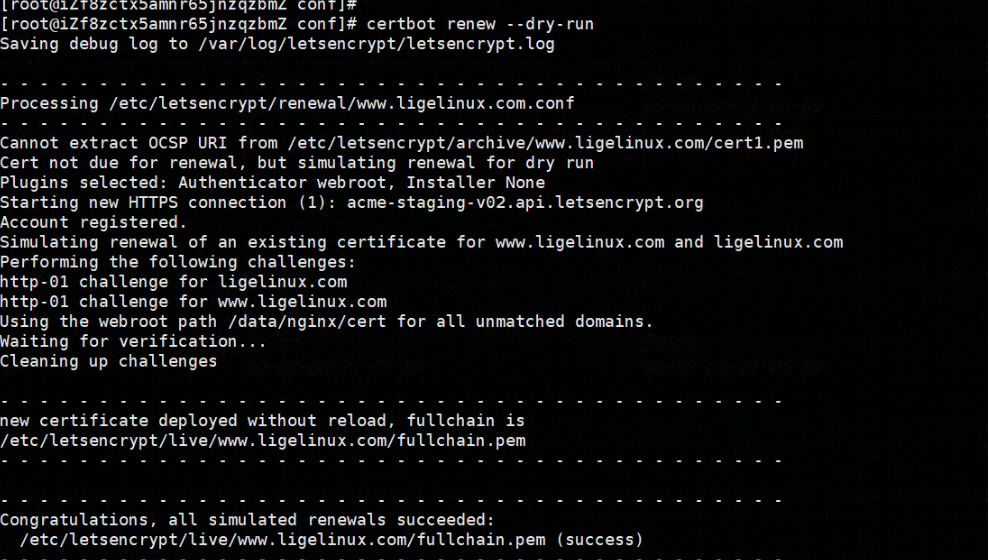 • -d www.ligelinux.com -d ligelinux.com:指定需要证书的域名
