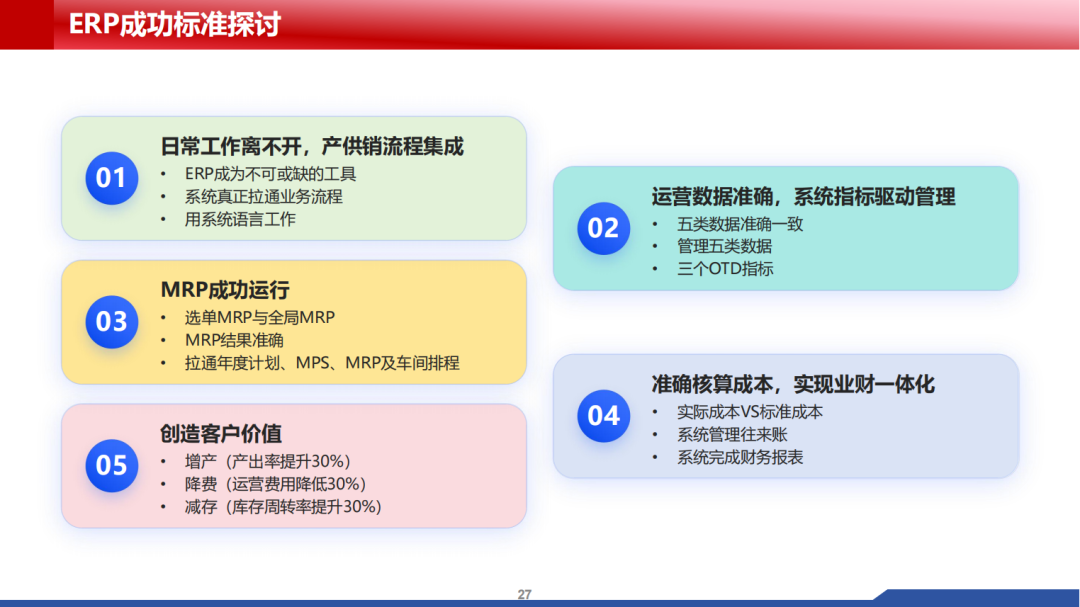 至少在目前,制造业通过ERP系统集成了销售、生产、采购主流程,通过ERP系统拉通了业财一体化,没有ERP系统的数据支撑,AI有什么用?所以,AI来临,制造业更要用好ERP,不断提升ERP数据的质量。