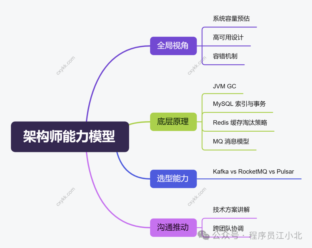 • 技术选型能力:别盲目跟风,多对比 Kafka、RocketMQ、Pulsar 等技术的差异。