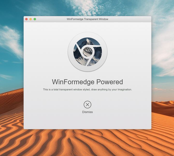 透明窗体允许开发者创建完全透明的窗体,适用于需要特殊视觉效果的应用程序。下图所展示的窗体,在 Windows 系统中使用 HTML 模拟了 macOS Yosemite 的窗体风格,因为使用了 WinFormedge 的透明窗体,因此从窗体的圆角效果、投影效果等等都完全使用 HTML 和 CSS 来实现。
