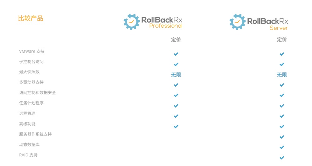 RollBack Rx Professional / RollBack Rx Server Edition 功能比较: