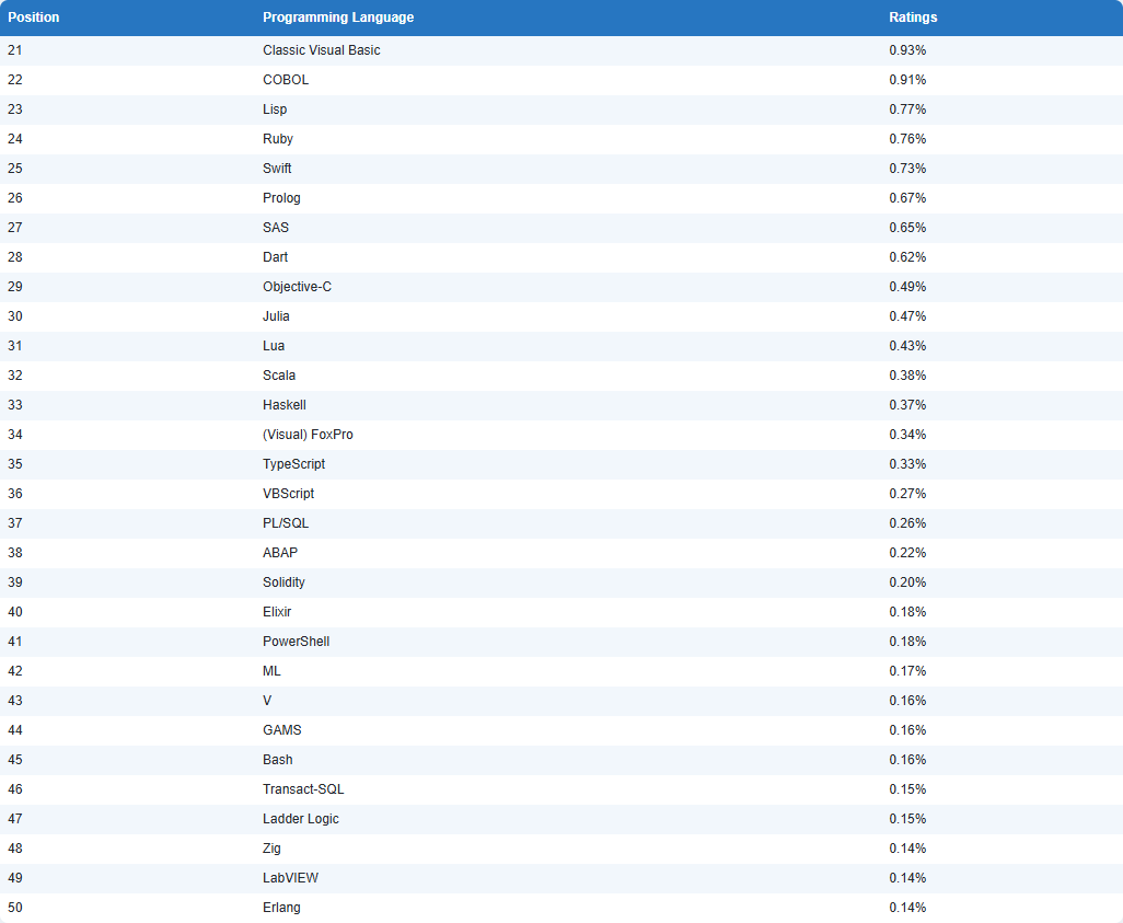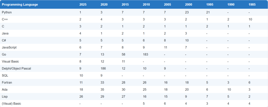 五、2025年9月 Tiobe 完整榜单1-20 名