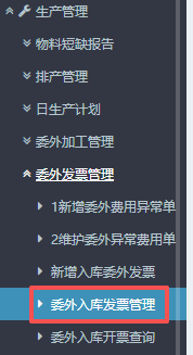 5.提交之后,可以到左侧功能菜单里找到“委外入库发票管理” 点击进入后,按图操作:点击查询,就能看到刚才提交的发票信息明细。 点晴模切ERP更多信息:http://moqie.clicksun.cn,联系电话:4001861886 该文章在 2025/9/26 10:08:25 编辑过 |