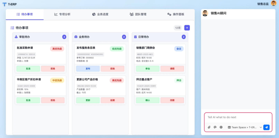 这种设计背后,还有端点科技对企业软件使用场景的判断——未来员工与系统的交互,将从主动寻找功能转向被动接收AI指令并决策。