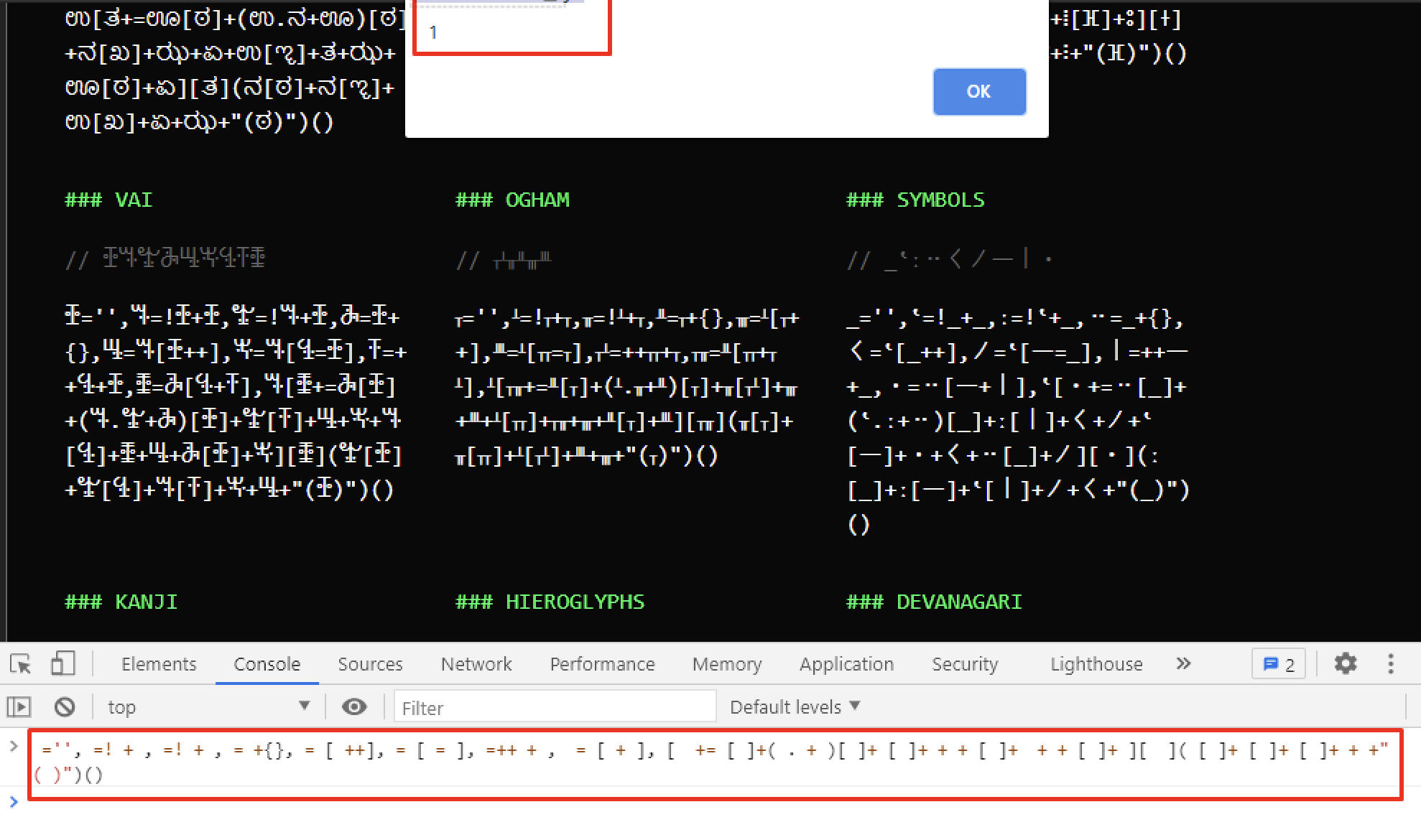 然后就在此处卡了很久,我也想过不使用alert使用prompt这些函数但就是不行,后面发现后面就是不能跟括号和反引号
