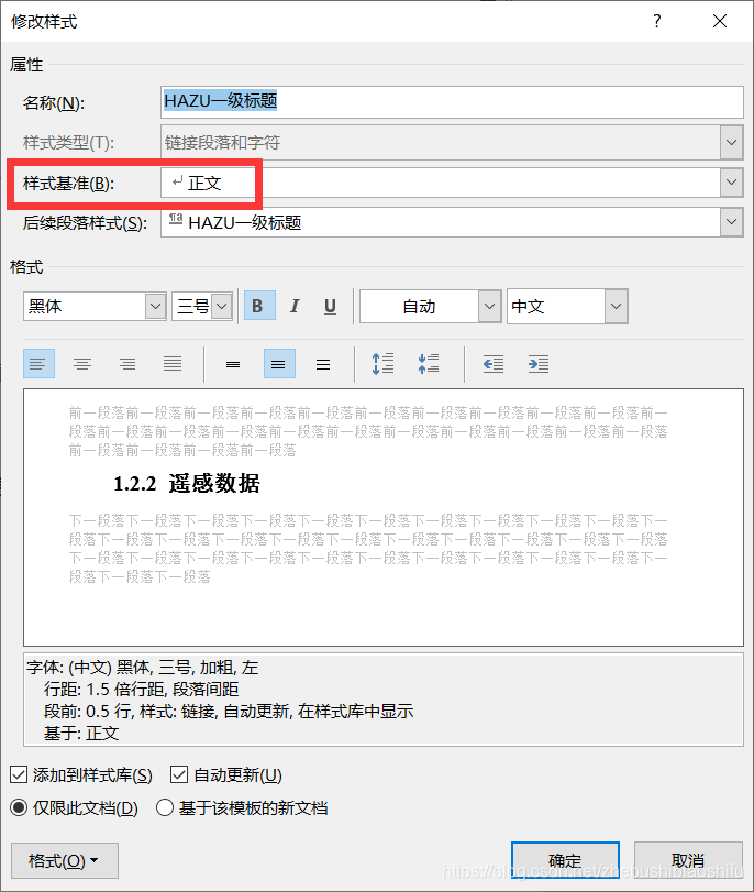 既然要新建一个样式,那我们就干脆新建一个新的、带着缩进的“正文”,这样子就不用一一修改标题的“基准样式”了;另一方面,有的时候我用方法A还不管用。因此建议大家用如下的方法。