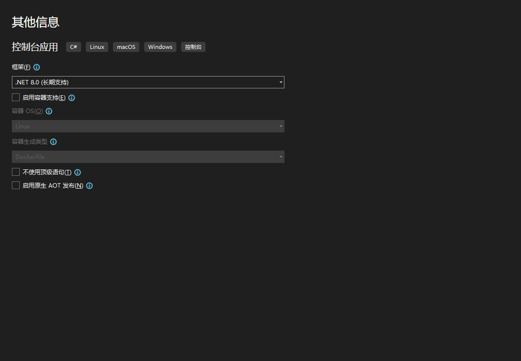 点击下一步,一个默认c#项目创建完成