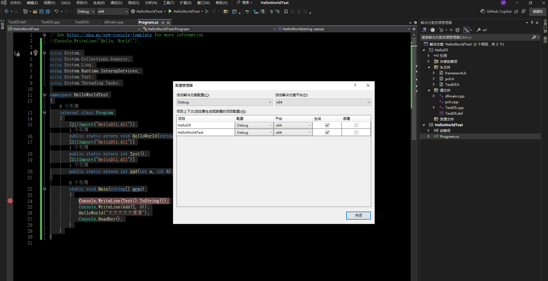 C++ 与 C#混合编程 示例 (基于VS2022)