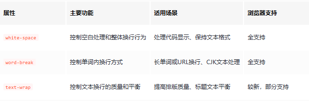 在网页设计中,文本内容的显示方式对可读性和整体视觉效果至关重要。CSS 提供了多个属性来控制文本的换行和空白处理,其中最常用的是 text-wrapwhite-space 和 word-break