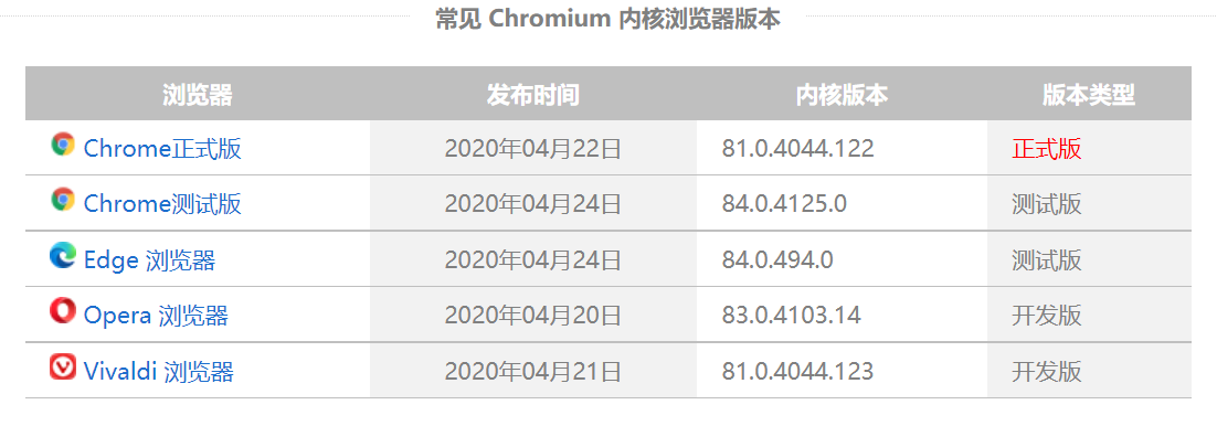 • 360安全浏览器(1.0-5.0为Trident,6.0为Trident+Webkit,7.0为Trident+Blink)